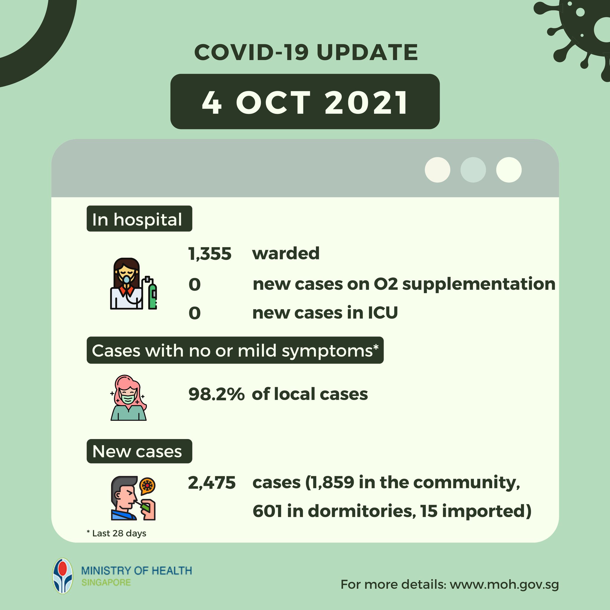 Ministry Of Health On Twitter Update On Covid 19 Situation 4 Oct 2021 Over The Last 28 Days 98 2 Of Local Cases Had No Or Mild Symptoms For Full Details Https T Co Ff7enlgyvd Https T Co Gdtdl58ei7